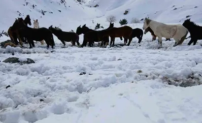 Edinilen bilgilere göre, kar yağışı sonrası katır sürüsü bulundukları yerden köylere inemeyerek karda zor durumda kaldı. Devriye görevi yapan güvenlik korucuları tarafından fark edilen hayvanlar arasında birinin donarak telef olduğu, bir katırın ise yarıya kadar kara gömülerek hareket edemediği tespit edildi.