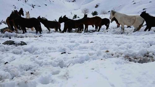 Batman Sason'da yoğun kar nedeniyle dağda mahsur kalan yaklaşık 30 katır kurtarıldı