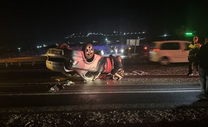 Bayburt'ta otomobilin refüje çarparak devrilmesi sonucu 6 kişi yaralandı.