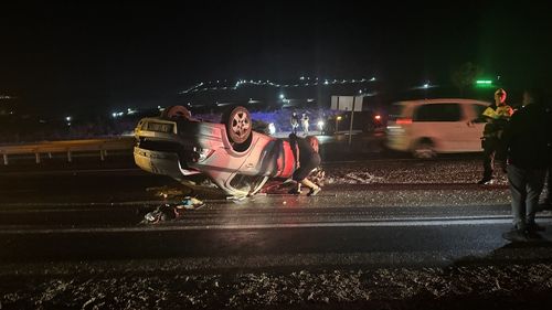 Bayburt-Gümüşhane karayolunda refüje çarpan otomobil devrildi: 6 yaralı