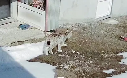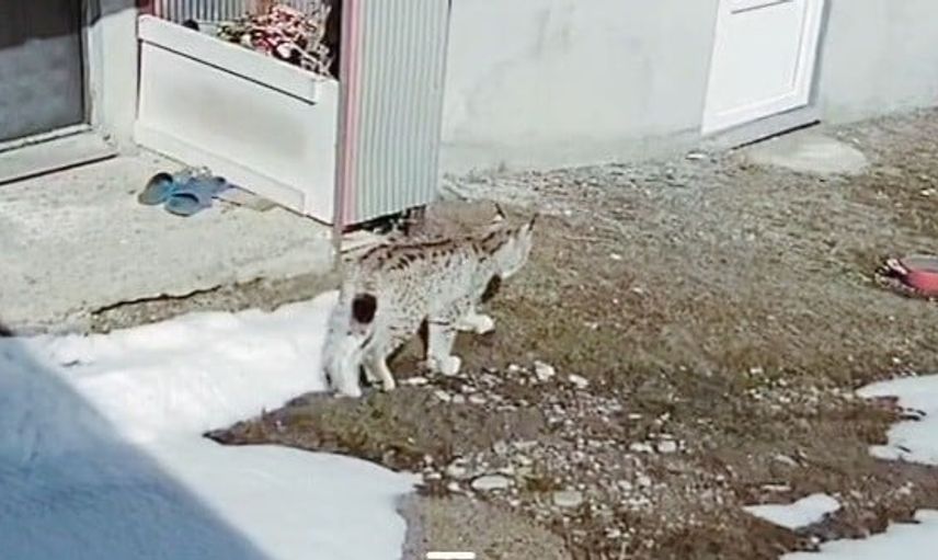 Bayburt'un Kurbanpınar köyünde bir vaşak'ın tavşan avladığı anlar, ev sahibinin güvenlik kamerasınca kaydedildi.
