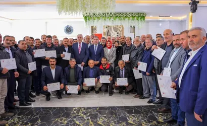 3 gün süren eğitimlerin sonunda Muhtarlar Akademisi katılım belgeleri, protokol üyeleri tarafından muhtarlara takdim edildi.
