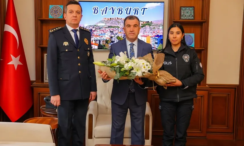 Türk Polis Teşkilatı’nın 181. kuruluş yıl dönümü dolayısıyla İl Emniyet Müdürü Barış Erkol ve beraberindeki emniyet personeli, Bayburt Valisi Mustafa Eldivan’ı ziyaret etti.