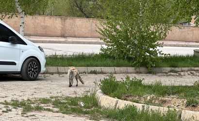 Bayburt'ta, yiyecek aramak amacıyla şehir merkezine inen bir tilki, dikkat çekti. Kaleardı Mahallesi'nde yer alan bir sitenin bahçesine gelen tilki, burada bir süre yiyecek arayışında bulundu.