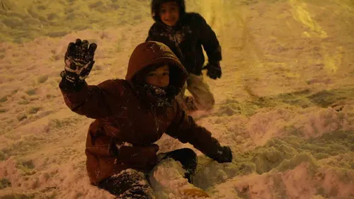 Yoğun kar nedeniyle okulların tatil edildiği Bayburt'ta, çocuklar Şingah Mahallesi'nin yokuşlarında tepsi ve poşetlerle kayarak eğlendi; eğitim bir günlüğüne ertelendi.