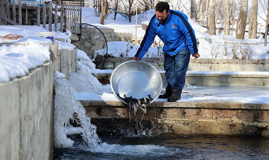 Bayburt'un Yoncalı köyündeki kültür alabalığı üreticileri, sıfırın altında 20 dereceye kadar düşen sıcaklıklara rağmen en lezzetli balığı yetiştirmek için çaba harcıyor. Dağ köylerinde etkisini sürdüren kar yağışı ve soğuk hava, üreticilerin alabalık havuzlarının donma tehdidi ile karşı karşıya kalmasına neden oluyor.