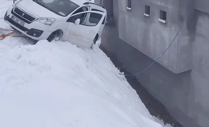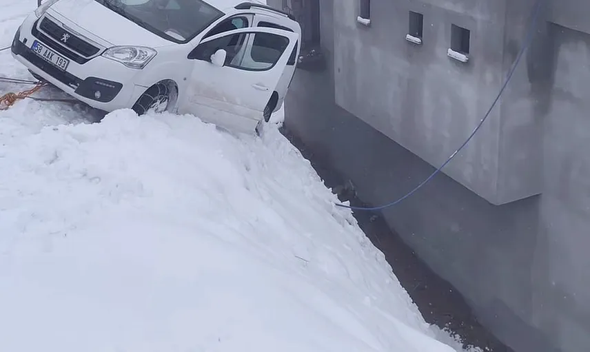 Edinilen bilgilere göre, sürücünün kaygan zeminde kontrolü yitirmesi sonucu araç evin duvarına çarparak asılı pozisyonda kaldı. Kazada ölen ya da yaralanan olmadı, araçta ise maddi hasar meydana geldi.