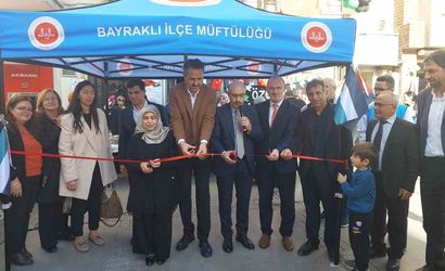 Bayraklı Sevgi Yolu’nda satışa sunulmak üzere kurulan hayır sergisinin açılış programına Bayraklı İlçe Müftüsü Mehmet Ali Kuştaşı ile İl Müftü Yardımcısı Şadiye Yılmaz, Türkiye Gazetesi İzmir Koordinatörü Yüksel Güven, müftülük çalışanları ve çok sayıda vatandaş katıldı. Açılış, okunan dualar ile gerçekleştirildi.