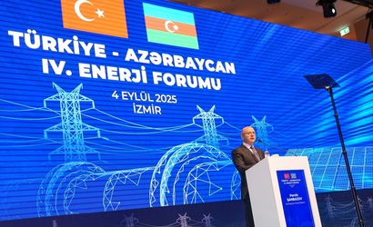 İzmir'de bir otelde Türkiye Rüzgar Enerjisi Kongresi (TÜREK 2025) kapsamında Türkiye-Azerbaycan 4. Enerji Forumu düzenlendi. Foruma; Enerji ve Tabii Kaynaklar Bakanı Alparslan Bayraktar (ortada), Azerbaycan Enerji Bakanı Perviz Şahbazov (solda) ile Azerbaycan Cumhurbaşkanının İklim Konularından Sorumlu Temsilcisi ve COP29 Başkanı Muhtar Babayev (sağda) katıldı.