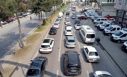 Ramazan Bayramı nedeniyle Samsun-Ordu kara yolunda büyük bir trafik yoğunluğu başladı. Samsun’un Terme ilçesinden Samsun-Ordu yolunda trafik, yoğunluk nedeniyle durma noktasına kadar geldi.