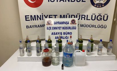 Bayrampaşa İlçe Emniyet Müdürlüğü Asayiş Büro Amirliği ekipleri iş yerinde sahte içki üretimi yapan şüpheli yakalandı. Şüpheli A.Ç. (64) polis ekiplerince gözaltına alınırken, adreste yapılan aramada, toplam 7,5 litre sahte içki ve şişe içerisinde malt ibareli viski aroması ele geçirildi.