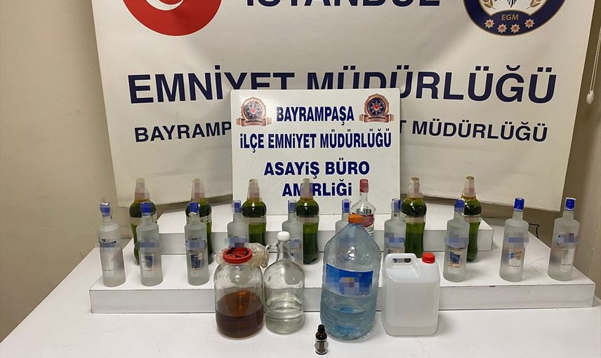 İstanbul'un Bayrampaşa ilçesinde, sahte içki üretimi yaptığı tespit edilen bir iş yerinde düzenlenen operasyonda, 64 yaşındaki A.Ç. isimli şüpheli gözaltına alındı.