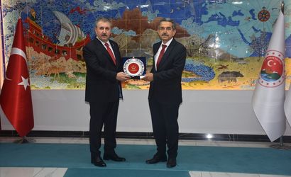 Büyük Birlik Partisi (BBP) Genel Başkanı Mustafa Destici (solda) çeşitli temaslarda bulunmak üzere geldiği Şırnak'ta, Vali Birol Ekici (sağda) ile görüştü, Şeref Defterini imzaladı.