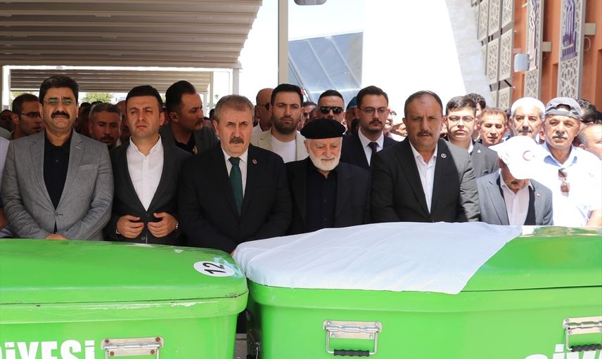 Büyük Birlik Partisi (BBP) Genel Başkanı Mustafa Destici (sol 3), partisinin Sivas İl Başkanı Ahmet Polat'ın eşinin cenaze törenine katıldı. Törene Vali Yardımcısı İhsan Maskar (sol 2), AK Parti Sivas Milletvekili Hakan Aksu (solda) ve vatandaşlar da katıldı.