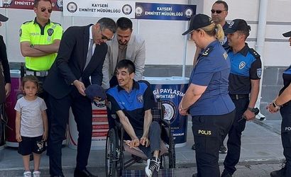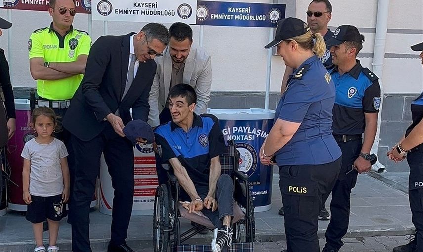 Kayseri'de polis ekipleri, bedensel engelli Hasan Can Kazel'in polis olma hayalini bir günlüğüne gerçekleştirdi. Kayseri Emniyet Müdürlüğü'nden yapılan açıklamaya göre, Toplum Destekli Polislik (TDP) Şubesi ekipleri, Kazel'in polislere olan sevgisini öğrendi.