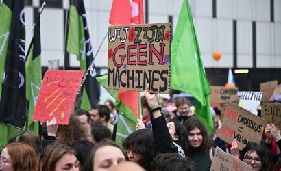 Grev kapsamında Brüksel'de on binlerce kişi hükümet politikalarını protesto etti. Göstericiler Kuzey Tren İstasyonu önünden toplanıp birkaç kilometre uzaklıktaki Midi Tren İstasyonu'na kadar yürüdü. Sendikaların renklerini taşıyan protestocular hükümet karşıtı sloganlar attı ve pankartlar açtı; şehir merkezinde yollar araç trafiğine kapatılırken yoğun trafik sıkışıklığı yaşandı.