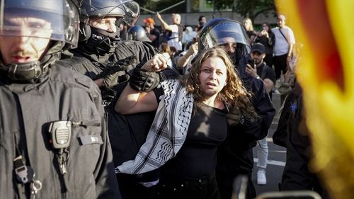 Almanya'nın başkenti Berlin'de Filistin'e destek eylemine polis sert müdahalede bulunarak çok sayıda kişiyi gözaltına aldı.