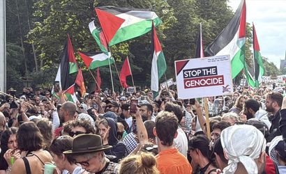 Katılımcılar, Filistin'e destek sloganları atarken, üzerlerinde İsrail aleyhine yazılar bulunan dövizler taşıdılar. Yürüyüş güzergahındaki binaların pencerelerine çıkan birçok kişi, göstericilere destek vererek eylemi izledi.