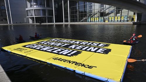 Berlin'de Greenpeace ve Uluslararası Af Örgütü'nden Farkındalık Eylemi