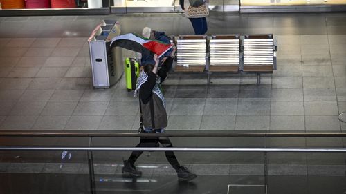 Berlin ana tren istasyonunda yaklaşık 300 kişi Küresel Sumud Filosu'na destek için toplandı; protesto istasyon dışına taşındı ve bazı göstericiler gözaltına alındı.