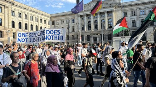 Almanya'nın başkenti Berlin'de düzenlenen Filistin'e destek yürüyüşünde, polis göstericilere sert müdahalede bulundu.Neptunbrunnen Meydanı'ndan...