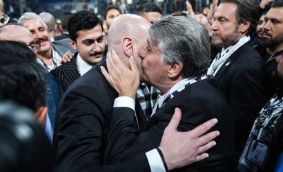 Beşiktaş Kulübünün olağanüstü seçimli genel kurulunda başkan adayları Hüseyin Yücel (solda) ile Serdal Adalı (sağda) bir araya geldi. Sinan Erdem Spor Salonu'nda gerçekleştirilen kongrede oy verme işleminin tamamlanmasının ardından Yücel ile Adalı, tezahüratlar eşliğinde ellerini havaya kaldırarak genel kurul üyelerini selamladı.