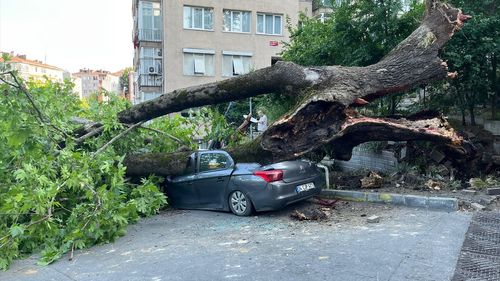 Beşiktaş'ta devrilen ağaç, 3 araca hasar verdi. Olay yerine gelen ekipler güvenlik önlemleri aldı.