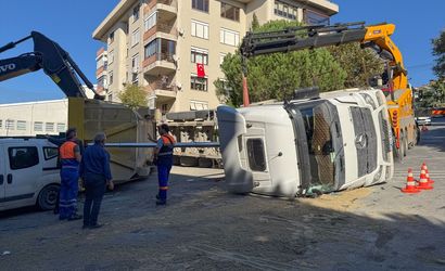 Edinilen bilgiye göre, 34 KAD 375 plakalı taş yüklü kamyon, dorsesini kaldırarak yük boşalttığı sırada yan yatarak devrildi. Kazada sürücü yaralanırken, devrilen kamyonun çarptığı park halindeki hafif ticari araca zarar oluştu.