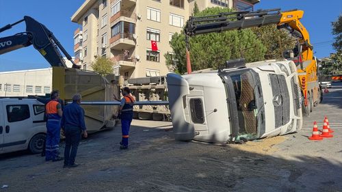 Beşiktaş Ulus Mahallesi'nde dorsesini kaldırırken devrilen taş yüklü kamyonun sürücüsü yaralandı; park halindeki hafif ticari araca zarar verildi.