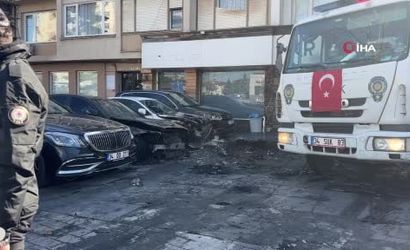 Beşiktaş'ta oto galeride gece yangını: 15 lüks araç zarar gördü