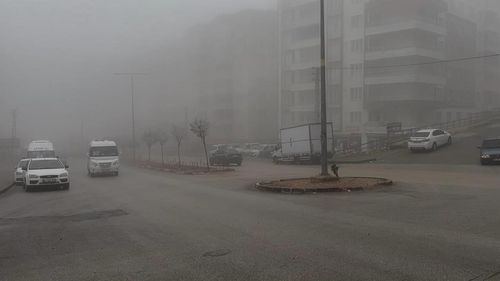Besni’de yoğun sis ve sağanak yağış görüş mesafesini düşürdü, trafik aksadı