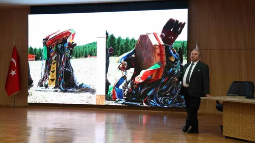 BEUN'da düzenlenen konferansta Prof. Dr. Şaban Doğan, Moğolistan'daki yaklaşık 200 yazıta, taşbabalara ve şehir harabelerine ilişkin bulguları ve yerinde korunma gereğini anlattı.