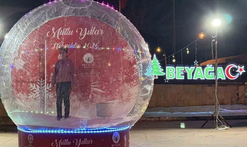 Denizli Büyükşehir Belediyesi ile Beyağaç Belediyesi işbirliğiyle Beyağaç Çarşı Meydanı'na yerleştirilen dev kar küresi, yılbaşı döneminde vatandaşların ilgi odağı oldu. Ziyaretçiler kürenin içine girerek fotoğraf çekiyor ve yeni yıla ait anılarını renkli görsellerle kaydediyor.