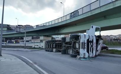 Olay, saat 15.00 sıralarında Beylikdüzü Liman Caddesi'nde meydana geldi. Seyir halindeki 41 VP 487 plakalı TIR, dönüş sırasında sürücüsünün kontrolünü kaybetmesi sonucu devrilerek yan yattı.