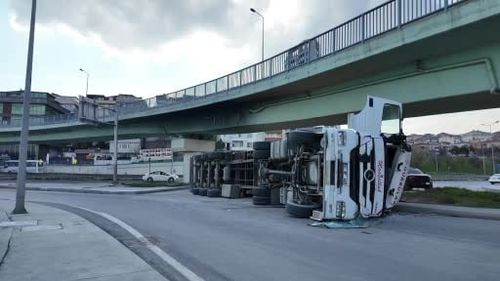 Beylikdüzü Liman Caddesi'nde saat 15.00 civarında virajı alamayan 41 VP 487 plakalı TIR devrildi; sürücü vatandaşların yardımıyla çıkarıldı, yaralanma yok.