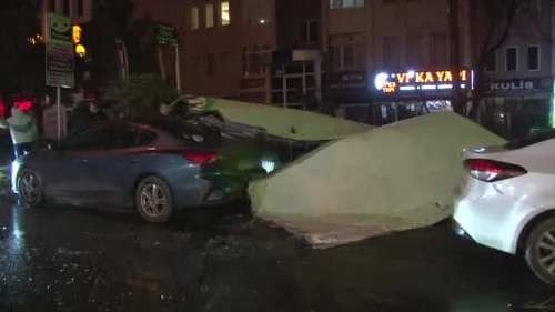 Beylikdüzü'nde şiddetli rüzgar: 15 katlı binanın dış cephe kaplaması park halindeki araca düştü