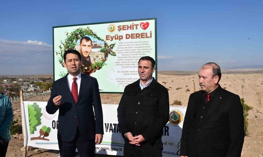 Eskişehir’in Beylikova ilçesinde, şehit Eyüp Dereli anısına ayrılan ağaçlandırma sahasına 5 bin fidan dikildi. Çalışma, çevre bilincini güçlendirmek, doğal yaşamı korumak ve gelecek nesillere daha yeşil bir ilçe bırakmak amacıyla yürütüldü.
