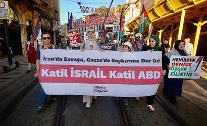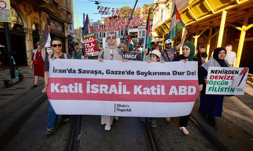 Filistin'e özgürlük gönüllüleri, İsrail'in Gazze'ye ve İran'a yönelik saldırılarını Beyoğlu'nda protesto etti. Şişhane Meydanı'nda toplanan gruptakiler, "Yaşasın halkların kardeşliği", "Yıkılsın Siyonist İsrail devleti", "Hepimiz İranlı, hepimiz Filistinliyiz" sloganları attı.