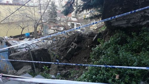 Beyoğlu'nda İstitinat Duvarının Çökmesi Sonrası Hasar Tespit Çalışmaları Devam Ediyor