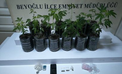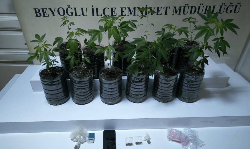 Beyoğlu İlçe Emniyet Müdürlüğü Asayiş Büro Amirliği ekiplerince, evinde uyuşturucu yetiştirip sattığı öne sürülen şüpheli tutuklandı. Beyoğlu Mahmut Şevket Paşa Mahallesi'nde oturan şüpheli D.Ş'nin evinde uyuşturucu yetiştirip sattığını belirledi. Şüphelinin adresine yapılan operasyonda, pet şişelere ekilmiş 12 kök Hint keneviri, 3,2 gram uyuşturucu, kenevir tohumu, cep telefonu ve hassas terazi ele geçirildi, şüpheli D.Ş. gözaltına alındı.