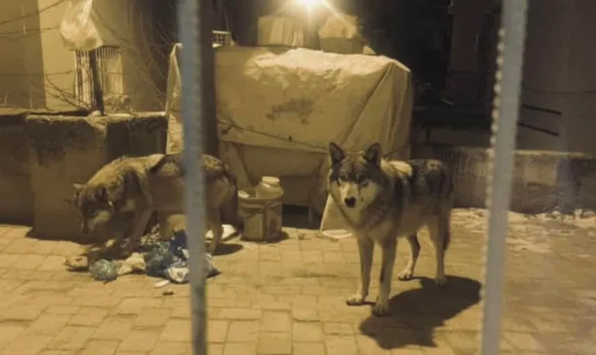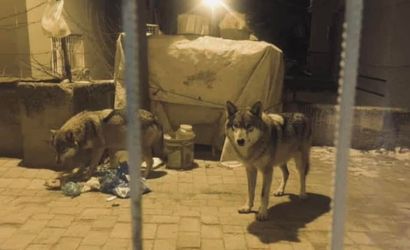 Ankara'nın Beypazarı ilçesinde aç kaldığı belirtilen kurtların yerleşim alanına inerek çöpleri karıştırdığı anlar bir vatandaşın cep telefonu kamerasına yansıdı.