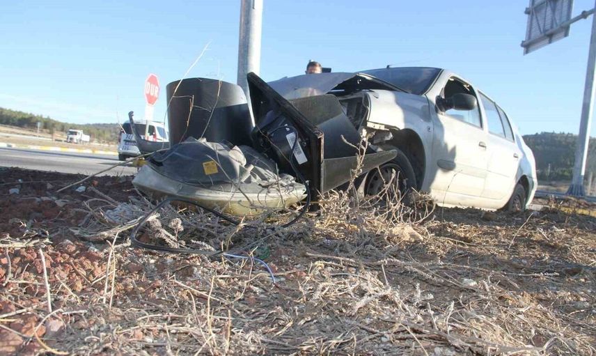 Beyşehir'de otomobil trafik ışığı direğine çarptı: 2 kişi yaralandı