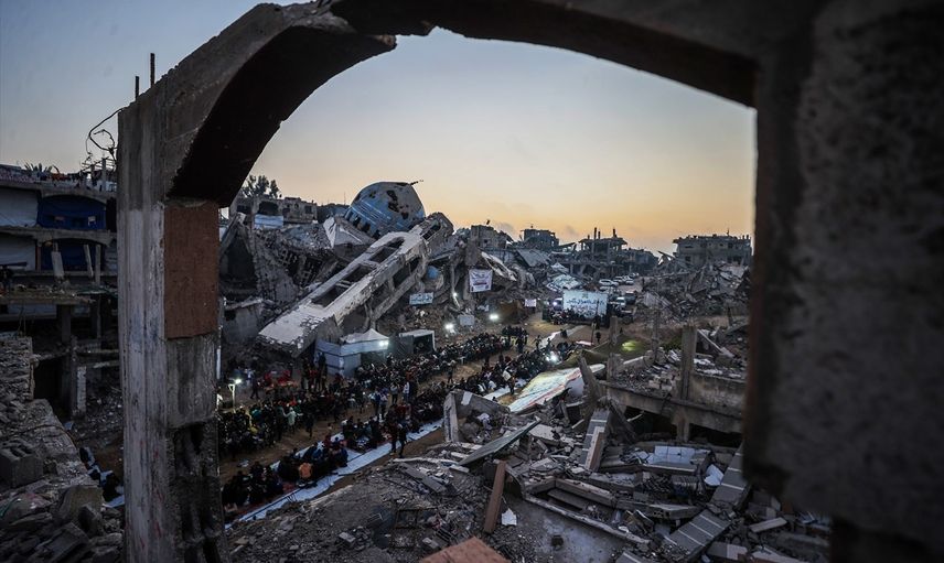 İsrail saldırılarında evleri yıkılan Gazze Şeridi'nin kuzeyindeki Beyt Lahiya kenti sakinleri, Ramazan ayında dayanışmayı artırmak amacıyla yıkıntılar arasında toplu iftar yaptı. "Beyt Lahiya Toplumu" adıyla düzenlenen iftar etkinliğinde yüzlerce Filistinli bir araya geldi.