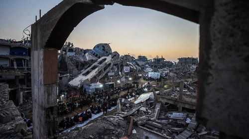 Beyt Lahiya sakinleri, Ramazan ayında dayanışma amacıyla yıkıntılar arasında toplu iftar gerçekleştirerek birliklerini gösterdi.