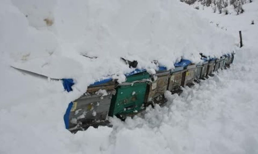 Şırnak’ın Beytüşşebap ilçesine bağlı Başaran köyünde, kar yağışı sonrası dağdan kopan kar kütlelerinin oluşturduğu çığ sonucu üretici Mustafa Özdemir'in kışlağa bıraktığı bal arıları çığ altında kaldı.