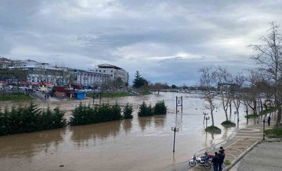 Biga'da Kocabaş Çayı taştı; otopark alanı sular altında kaldı