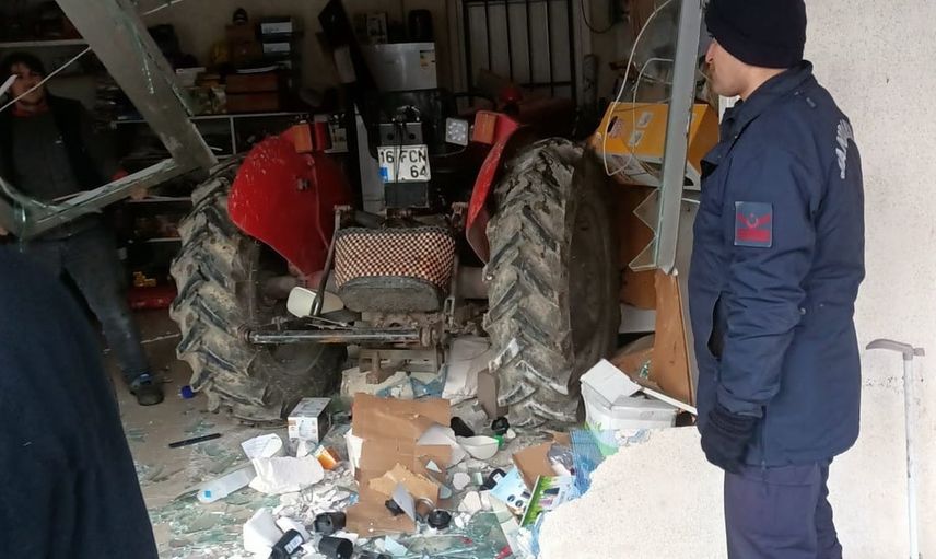 Bilecik Bayırköy'de kontrolden çıkan traktör iş yerine girdi