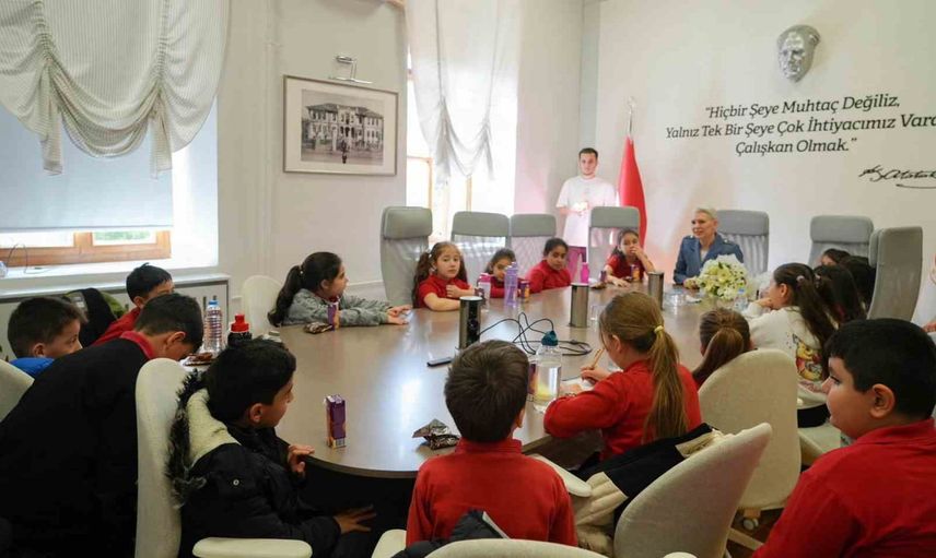 Bilecik Belediye Başkanı Melek Mızrak Subaşı, Şehit Abdülhamit Bilgen İlkokulu 2/A sınıfı öğrencilerini makamında kabul etti.