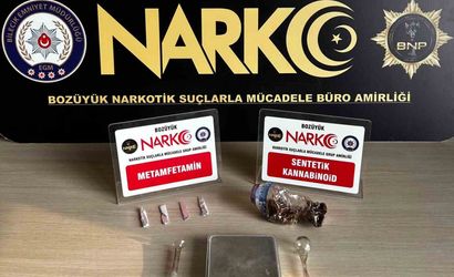 Yapılan aramalarda 18,84 gram sentetik kannabinoid (Bonzai), 1,52 gram metamfetamin, 1 adet hassas terazi ve 2 adet uyuşturucu madde tüketiminde kullanılan bong aparatı ele geçirildi.
