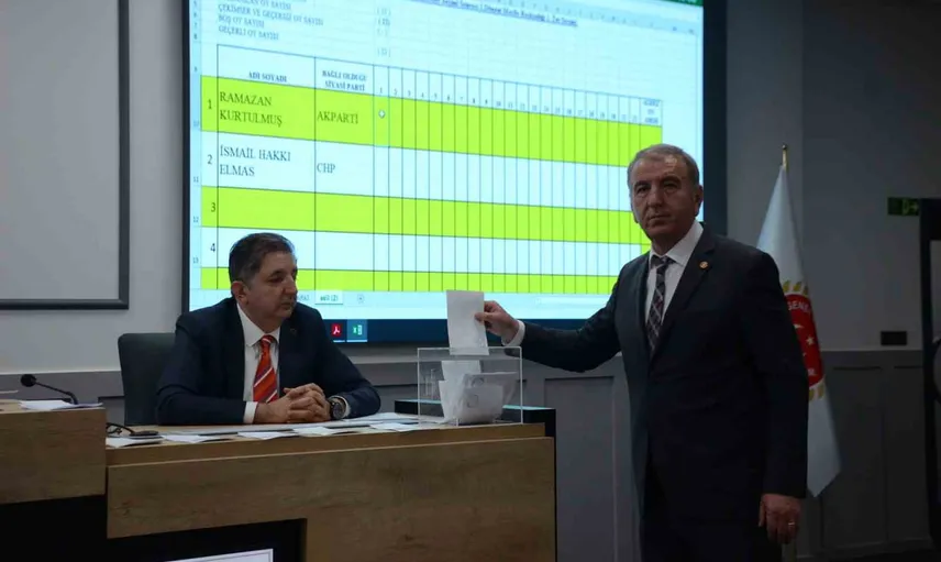 Öne çıkan veriler: Ramazan Kurtulmuş 11 oy, İsmail Hakkı Elmas 9 oy, 2 boş oy; meclis dağılımı CHP 10, AKP 8, MHP 2, İYİ Parti 2.